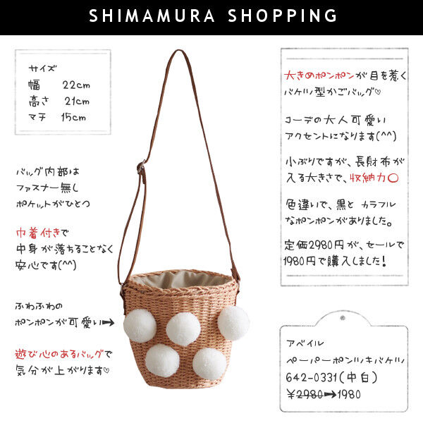 2018.5.28 【アベイル購入品】大きめポンポンが可愛い!遊び心のある<かごバッグ>に一目惚れ しまむら系列店「アベイル」で購入したポンポン付きバケツ型かごバッグをご紹介します。アベイル購入品♡ ポンポン付きバケツ型かごバッグバッグ:アベイル 1,980円(642-0331) ※ カッコ内は商品の品番です。大きめポンポン♡ 遊び心のあるバッグこのバッグをアベイルで見 ... 続きを読む