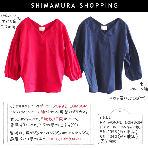 2018.5.24 【しまむら購入品】HK WORKS盛り袖ブラウス、赤・紺・白とイロチ買いした理由 しまむら×コシノヒロコ「HK WORKS LONDON」バルーン袖ブラウスをご紹介します。赤とネイビー、色違いで購入しました。しまむら購入品♡ HK WORKS LONDONバルーン袖ブラウスブラウス(赤):しまむら 1,900円(511-0325) ブラウス(紺):しまむら 1,900円(511-0342) ※ ... 続きを読む