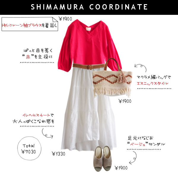2018.5.27 【しまむらコーデ】“赤”の着こなし方とは?夏のエスニックスタイル しまむら×コシノヒロコ「HK WORKS LONDON」バルーン袖ブラウスでコーデを考えました。“赤”の着こなし方とは?夏のエスニックスタイルブラウス:しまむら 1,900円(511-0325) スカート:しまむら 1,330円(昨年購入) サンダル:しまむら 1,900円(昨年購入) バッグ:し ... 続きを読む