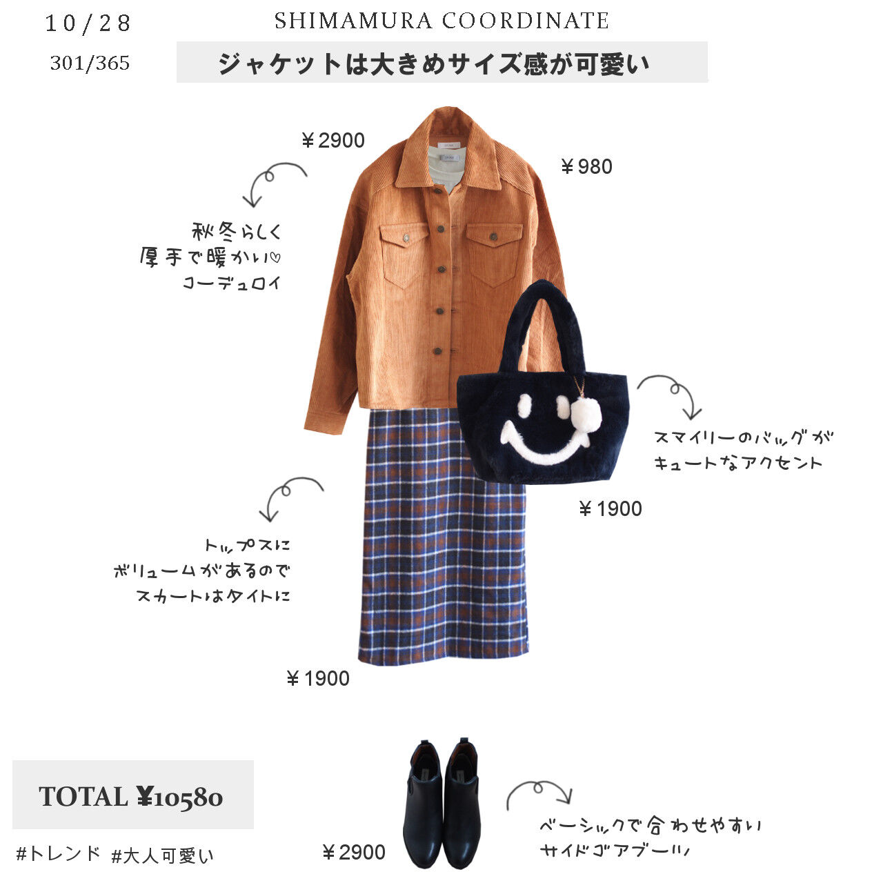 2018.10.28 【しまむらコーデ】大きめサイズが可愛い♪コーデュロイジャケットとチェック柄スカートで秋コーデ 今日のしまむらコーデです。大きめサイズが可愛い♪コーデュロイジャケットとチェック柄スカートで秋コーデジャケット:しまむら 2,900円(529-1491) Tシャツ:しまむら 980円(521-2005) スカート:しまむら 1,900円(522-0028) ブーツ:しまむら 2,900円(昨年購入) バ ... 続きを読む