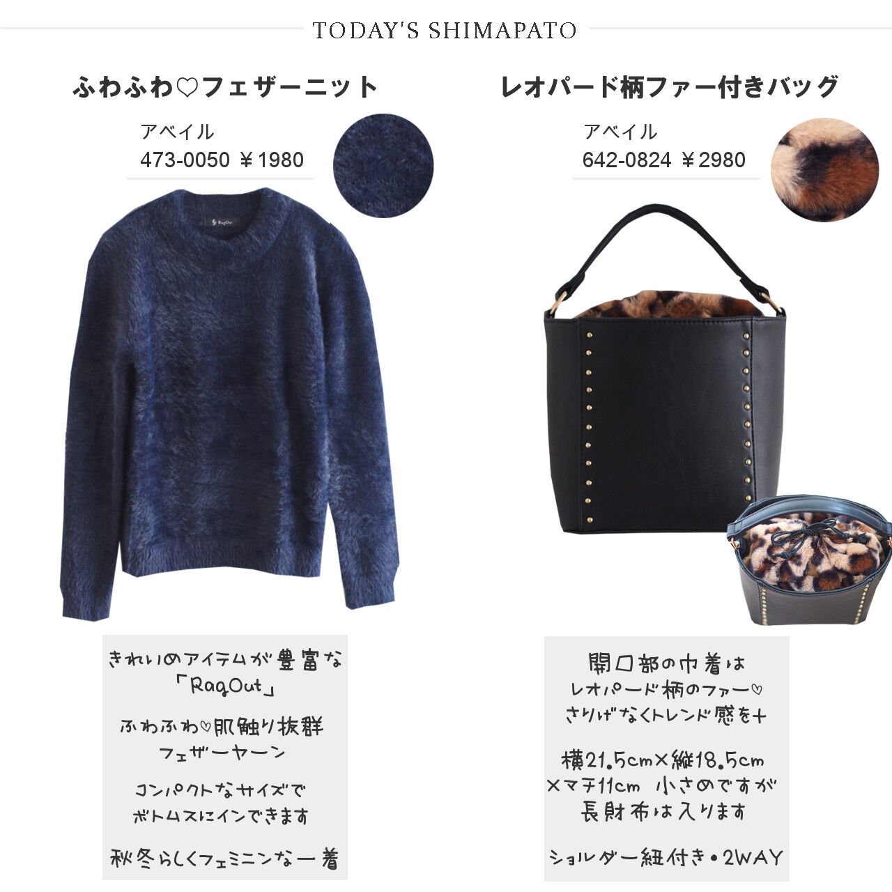 2018.10.23 【アベパト】トレンドのレオパード柄をチラ見せ♪バケツ型バッグ、ふわふわフェザーニット しまむら系列店「アベイル」に行ってきました。購入品をご紹介します。アベパト♡ 購入品ニット:アベイル 1,980円(473-0050) バッグ:アベイル 2,980円(642-0824) ※ カッコ内は商品の品番です。トレンドのレオパード柄をチラ見せ♡ ミニバッグレオパード柄は今季のトレ ... 続きを読む