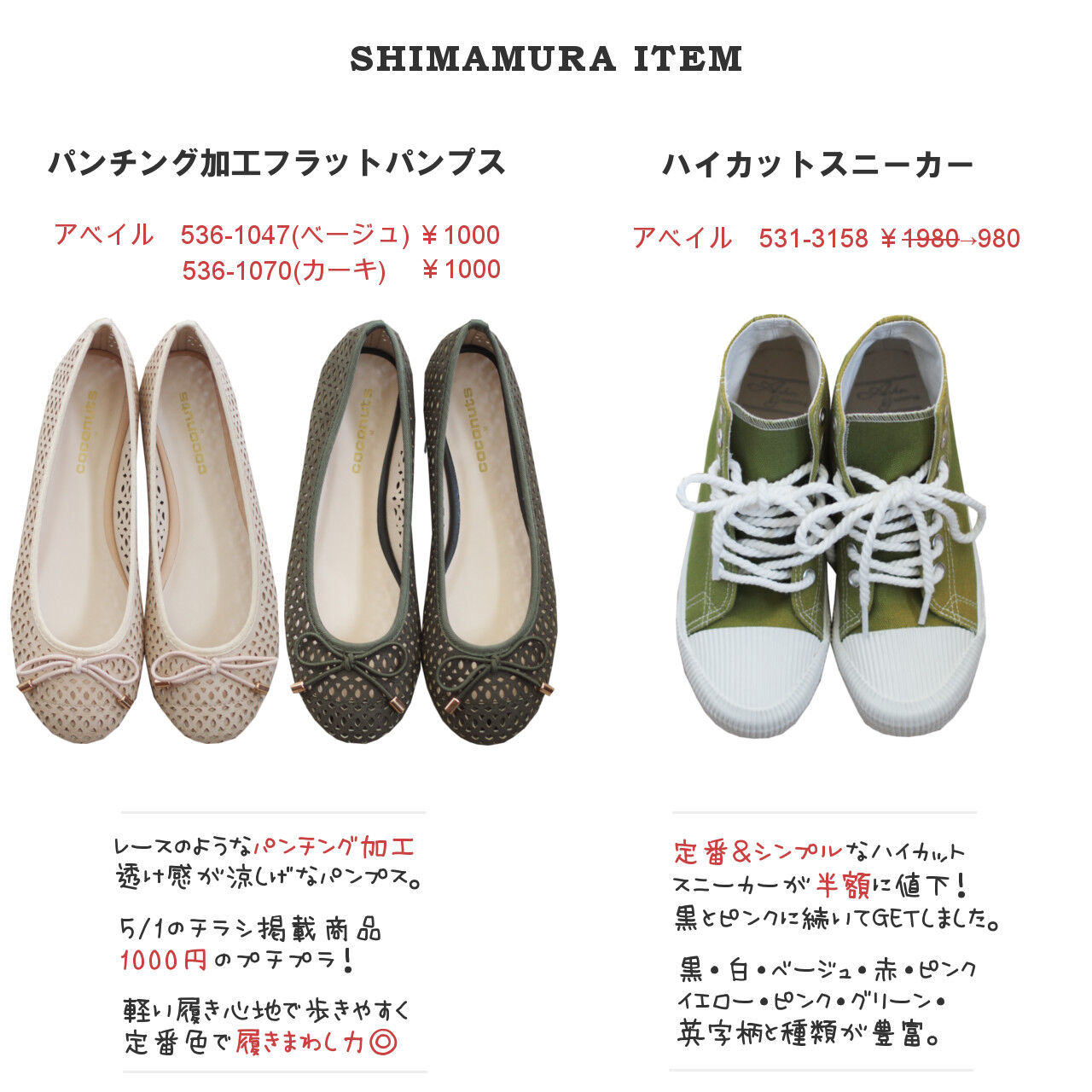2019.5.23 【アベパト】1000円夏パンプス、半額980円スニーカーを色ち買い♪ 久々になってしまいましたが、「アベパト」購入品を2~3点ずつご紹介します。アベパト♡ 購入品パンプス(ベージュ):アベイル 1,000円(536-1047) パンプス(カーキ):アベイル 1,000円(536-1070) スニーカー:アベイル 980円(531-3158) ※ カッコ内は商品の品番です ... 続きを読む