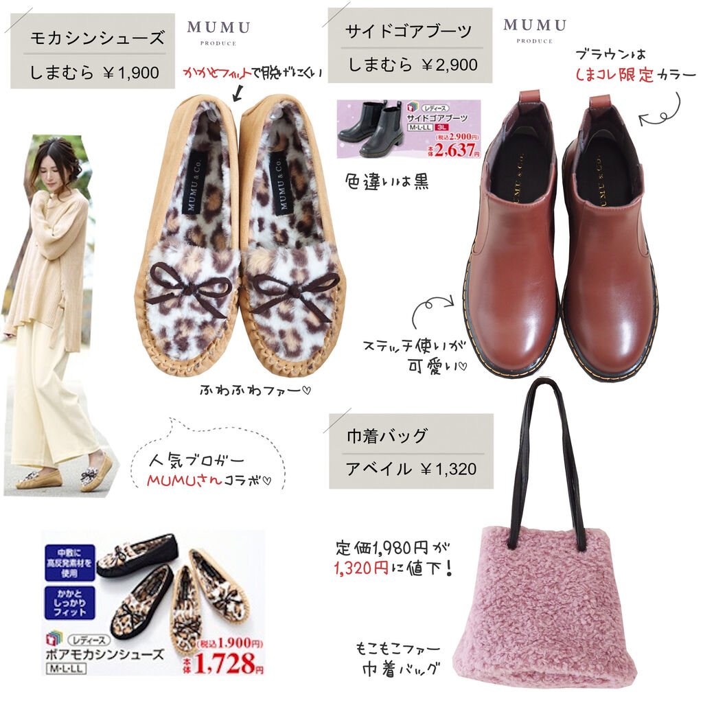 2019.12.19 【しまパト】人気ブロガーMUMUさんコラボ!モカシン&サイドゴアブーツで足元を可愛く♡ 「しまむら」と系列店「アベイル」の購入品をご紹介します。目次 1. しまむら&アベイル購入品1.1. 人気の“MUMUさん”コラボ♡レオパード柄が可愛いモカシン1.2. MUMUさんとプチプラのあやさんのサイドゴアブーツを比較1.3. 1,320円に値下!もこもこファー巾着バッグしまむ ... 続きを読む