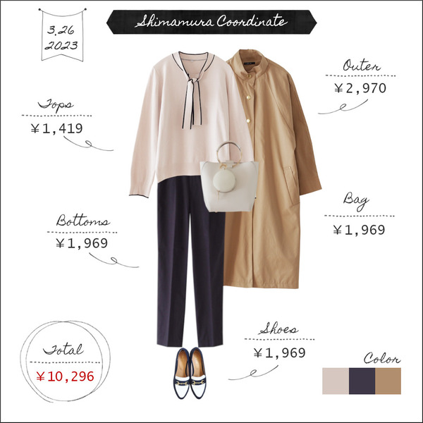 2023.3.27 【全身しまむら10000円台コーデ】配色から考える<キャメル>⑧~落ち着いてみえて華やかさもある色~ こんにちは。3月26日のコーデです。ニット:しまむら 1,419円(513-2229)パンツ:しまむら 1,969円(554-1356)コート:しまむら 2,970円(537-0627)ローファー:しまむら 1,969円(2020年購入)バッグ:しまむら 1,969円(343-1590)※カッコ内は商品の品番です。◆先週に ... 続きを読む