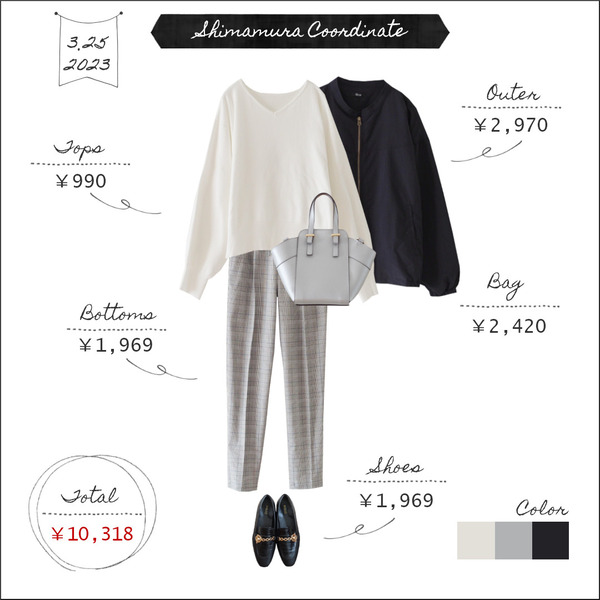2023.3.26 【全身しまむら10000円台コーデ】配色から考える<黒>➆~シンプルで大人っぽい印象になる基本色~ こんにちは。3月25日のコーデです。ニット:しまむら 990円(2020年購入)パンツ:しまむら 1,969円(2020年購入)ジャケット:しまむら 2,970円(520-0230)ローファー:しまむら 1,969円(2021年購入)バッグ:しまむら 2,420円(343-1424)※カッコ内は商品の品番です。◆ ... 続きを読む
