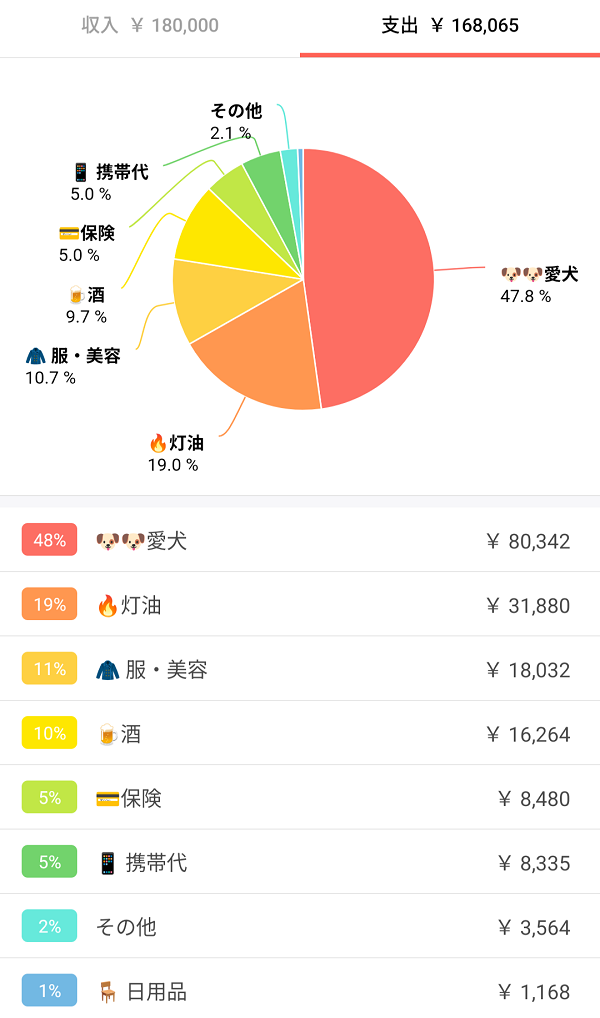 私は愛犬費、灯油代、酒代、日用品の一部