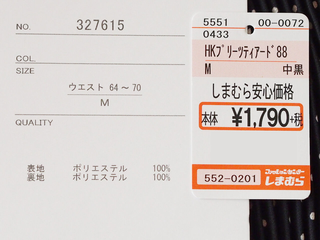 スカート:しまむら 1,969円(552-0201)