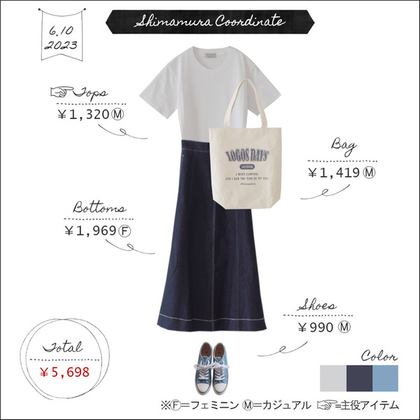 2023.6.18 【全身しまむら5000円台コーデ】定番の「白Tシャツ」も主役アイテムになる こんにちは。6月10日のコーデです。①Tシャツ:アベイル 1,320円(340-4349)F.スカート:しまむら 1,969円(551-1428)コ.スニーカー:しまむら 990円(148-1152)⑭バッグ:しまむら 1,419円(344-1844)※カッコ内は商品の品番です。※アベイルはしまむら系列店です。※F ... 続きを読む
