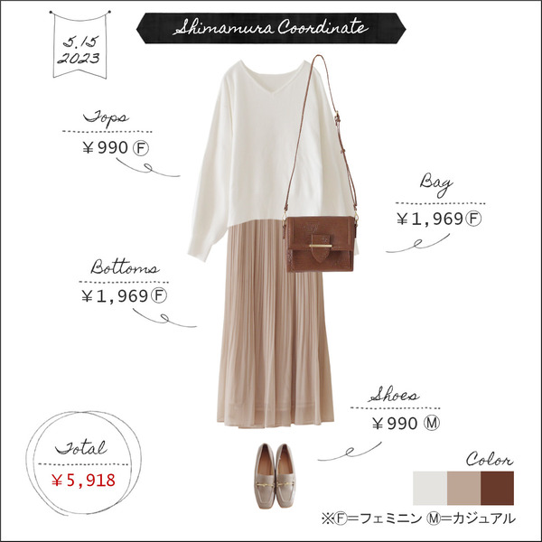 2023.5.18 【全身しまむら5000円台コーデ】淡色コーデの引き締め色になる「ダークブラウン」 こんにちは。5月15日のコーデです。③ニット:しまむら 990円(2020年購入)c.スカート:しまむら 1,969円(552-0726)k.ローファー:しまむら 990円(144-4651)お.バッグ:しまむら 1,969円(2020年購入)※カッコ内は商品の品番です。※Fはフェミニン、Mはカジュアルなア ... 続きを読む